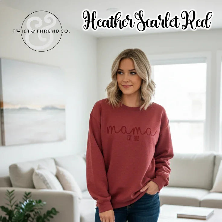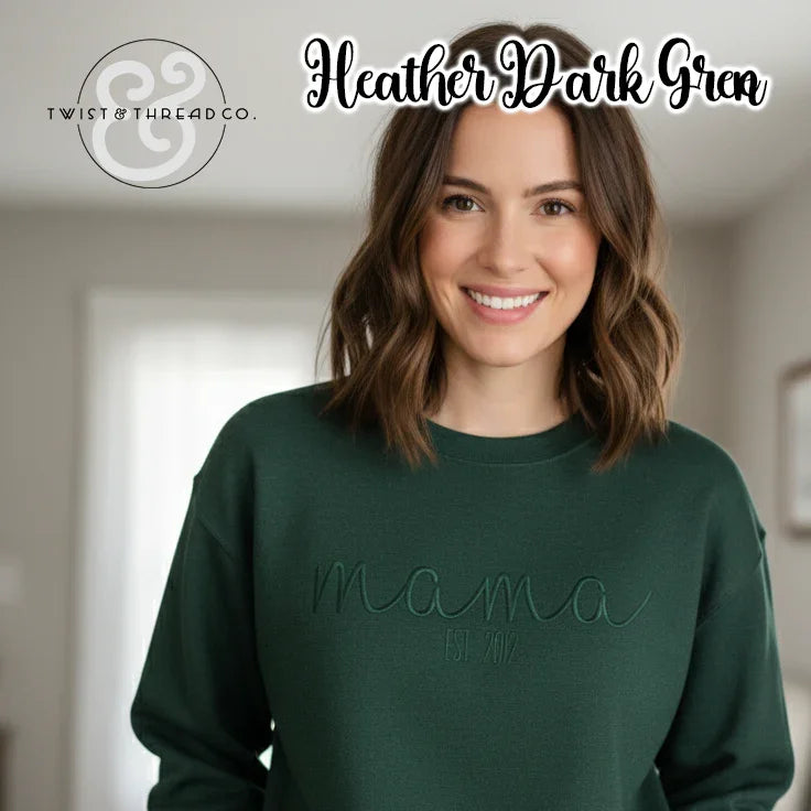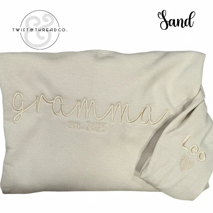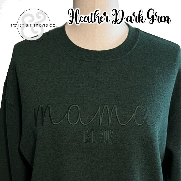 Custom Monochrome Embroidered Sweatshirt: Personalized Mama, Nana, Nona, Gigi, & Established Year
